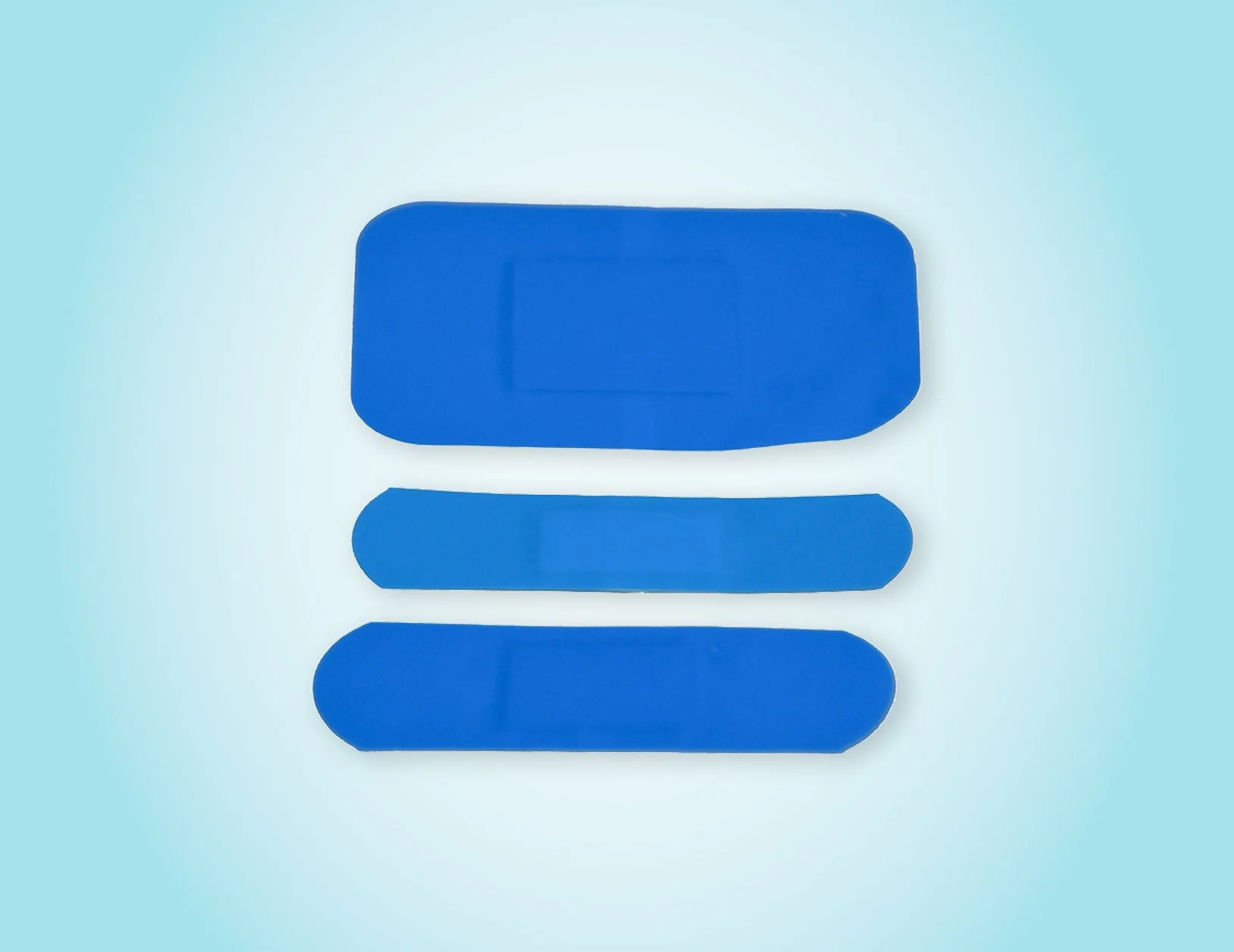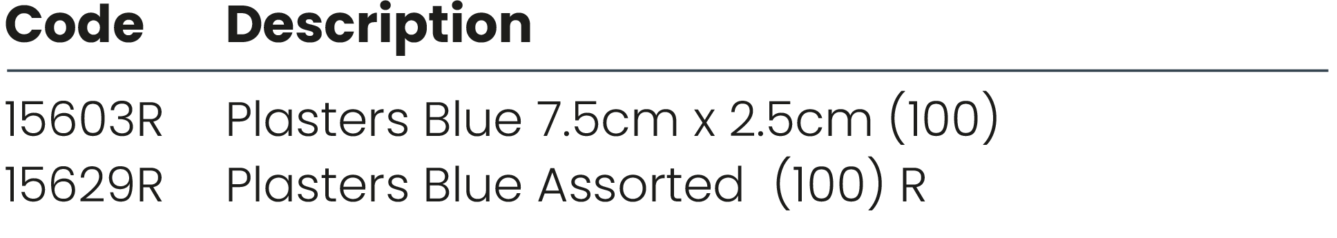 Assorted Blue Detectable Plasters are widely used in areas of professional food preparation. They are an essential item to store in a medical cabinet wherever food is being prepared as they are visually and metal detectable. Each Blue Plaster contains tiny metal filaments that can be detected by metal scanning equipment. This makes them ideal for use across a broad range of professional food preparation outlets, from delis to butchers, fishmongers, bakeries and right up to large-scale mass-produced food lines.